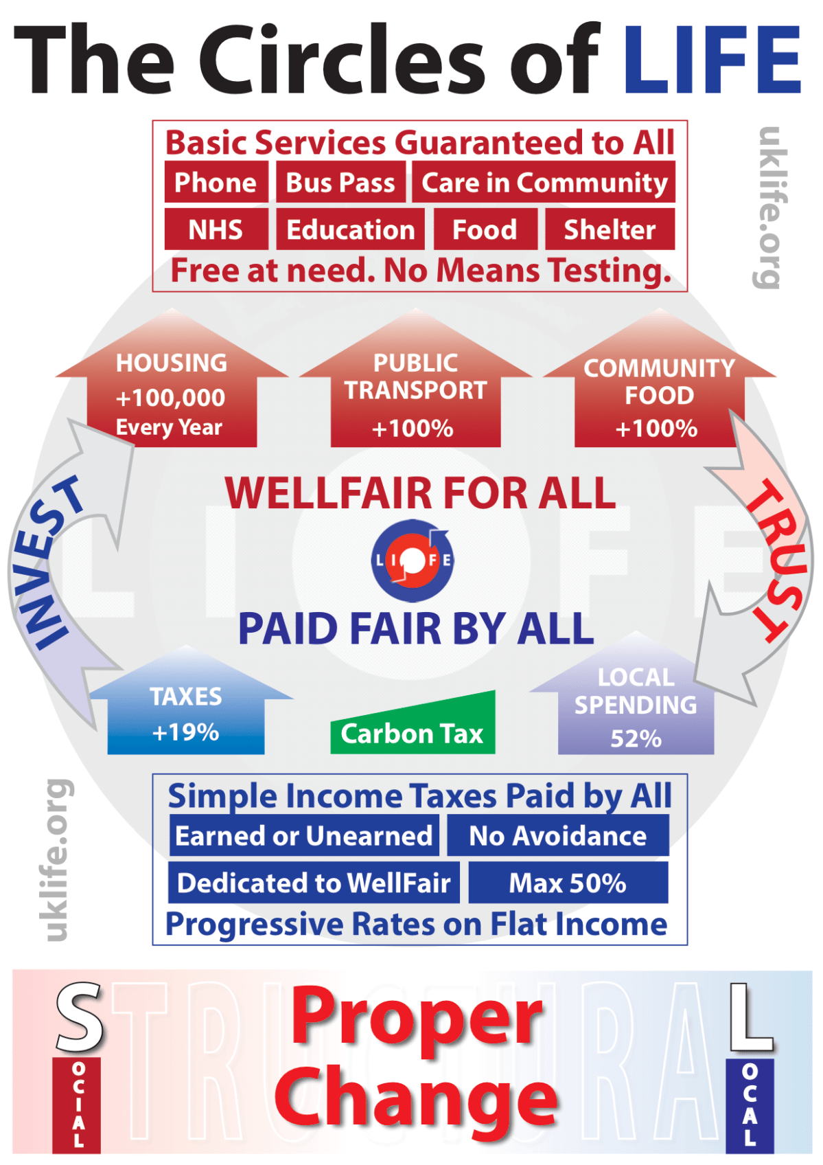 LIFE will ensure that all money raised from Income Taxes, National Insurance, Inheritance Tax, and other personal taxes are only spent on public services.